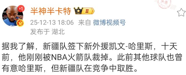 就在新疆男篮揭幕战即将开始的时候,有媒体人报道新疆男篮已经和刚被火箭队裁掉的后卫哈里斯完成了签约。
